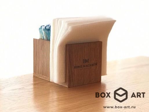 - Деревянная салфетница с отделением для стиков с сахаром