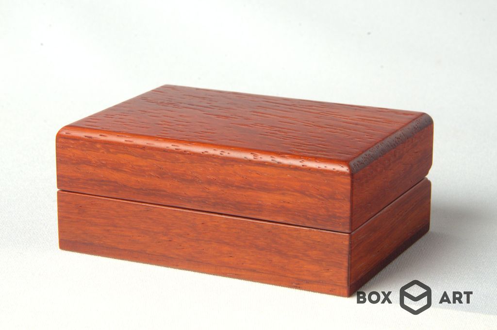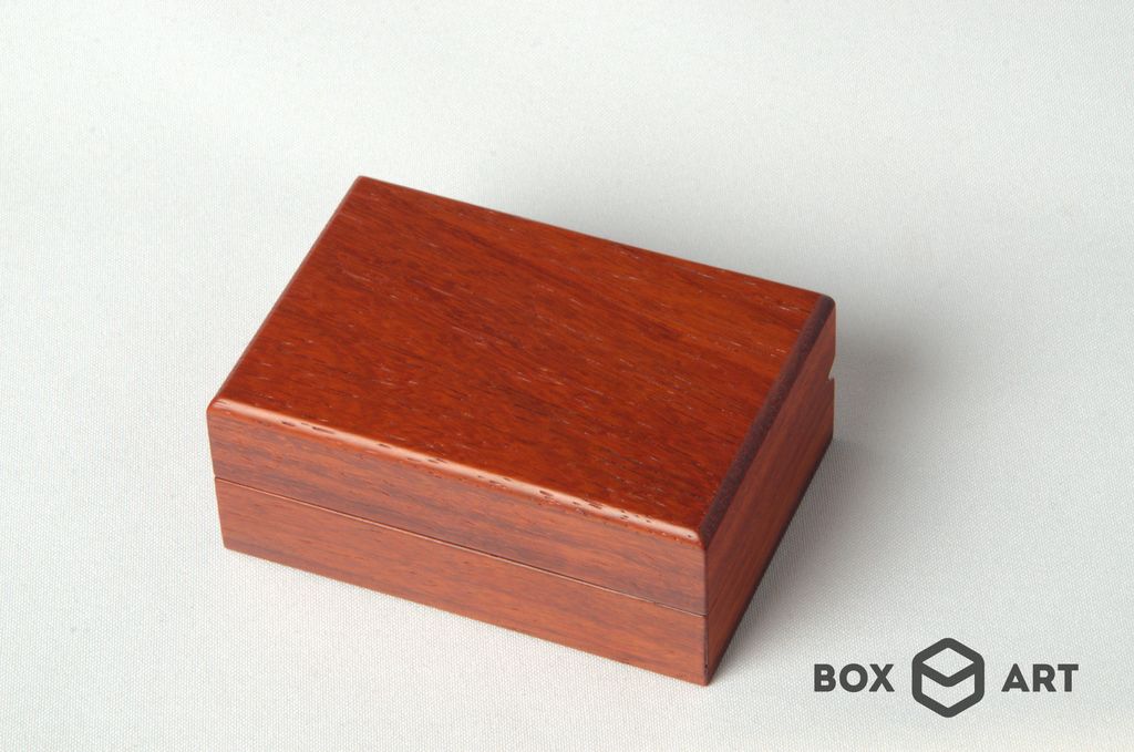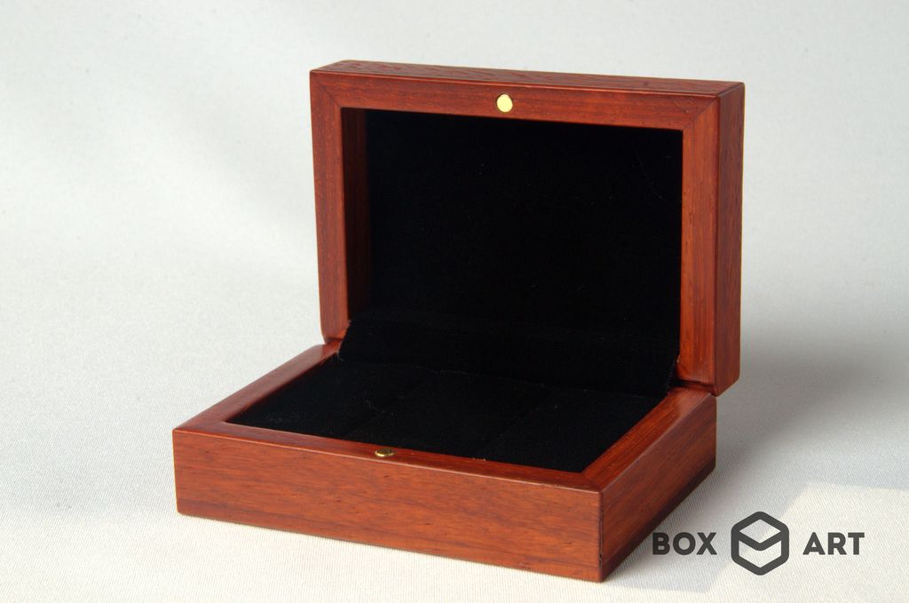 Изготовлена из массива красного дерева, бесцветная лакировка, подушечки с искуственым бархатом, магнитный замок.