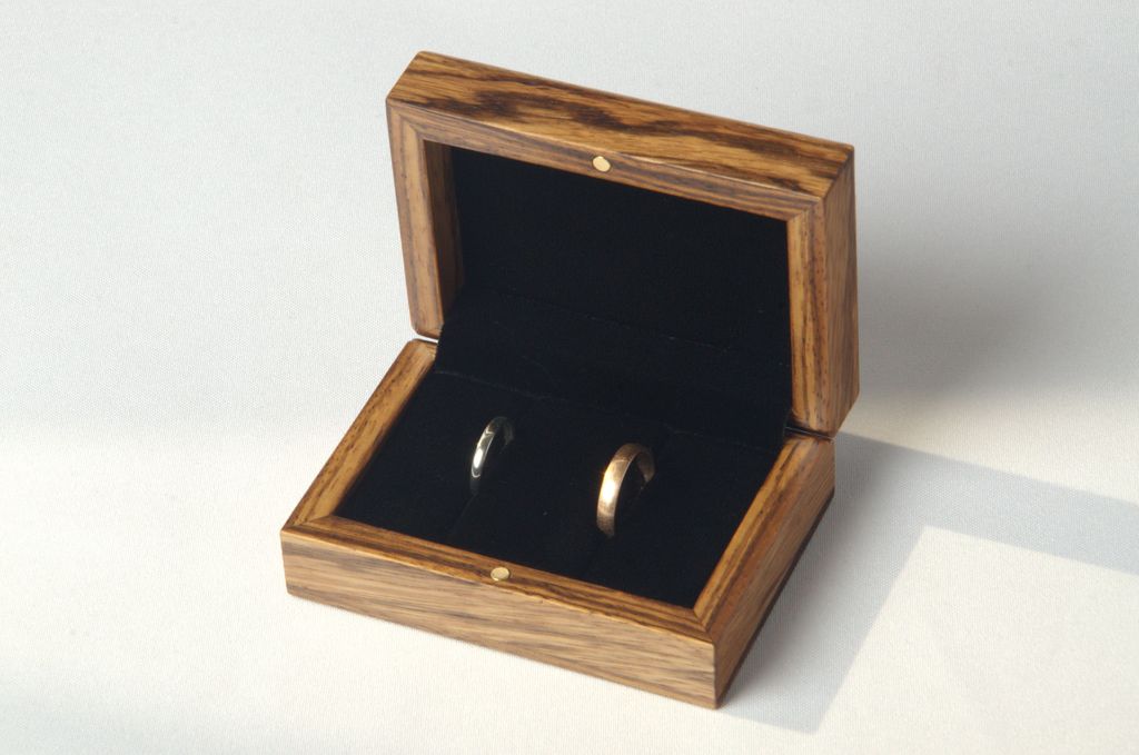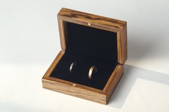 Крутой футляр из полосатого массива зебрано для свадебных колец или хранения ювелирных украшений.