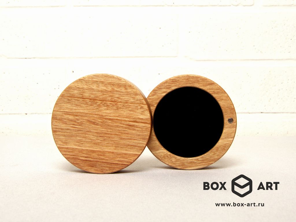 Круглый футляр изготовленный из массива дерева сапели.