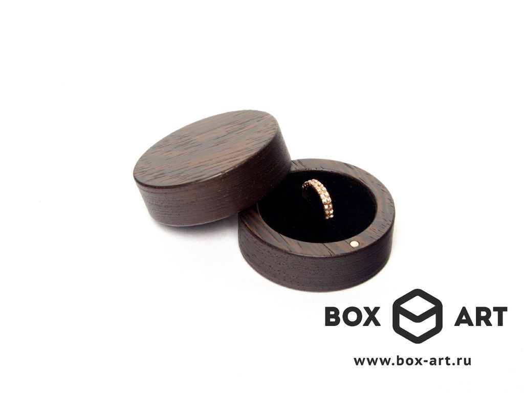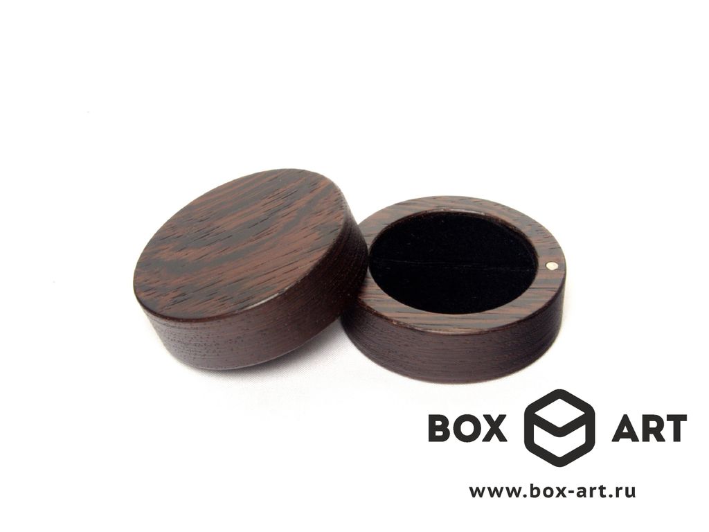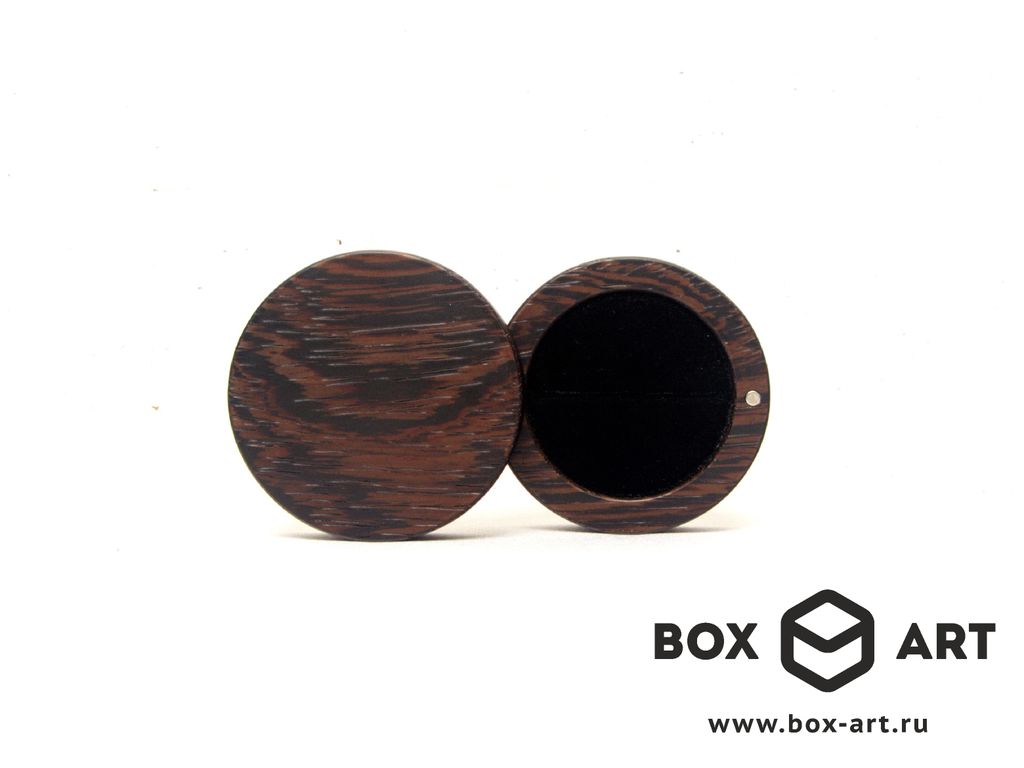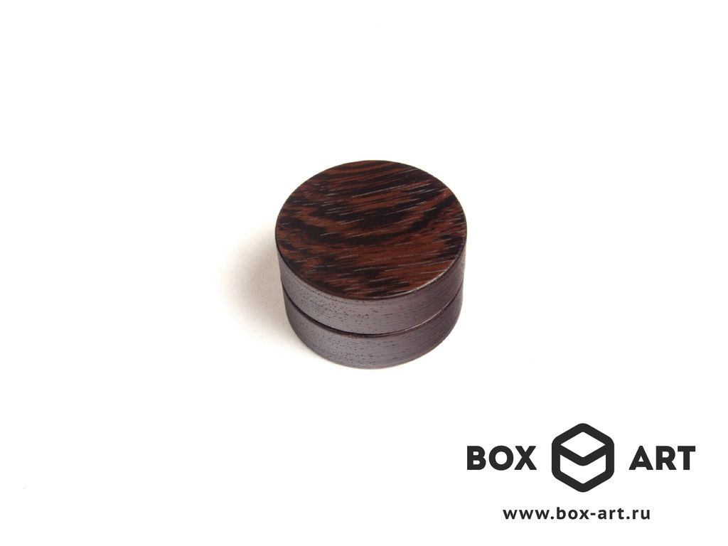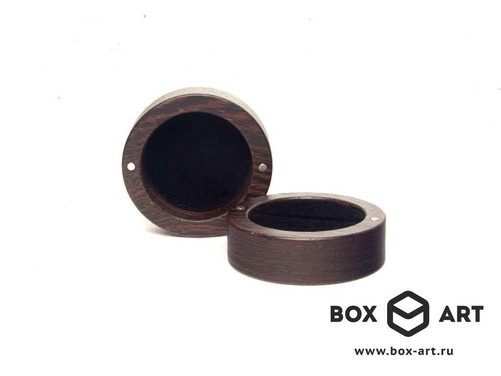 Круглый футляр изготовленный из массива дерева венге. Покрытие - бесцветный лак.