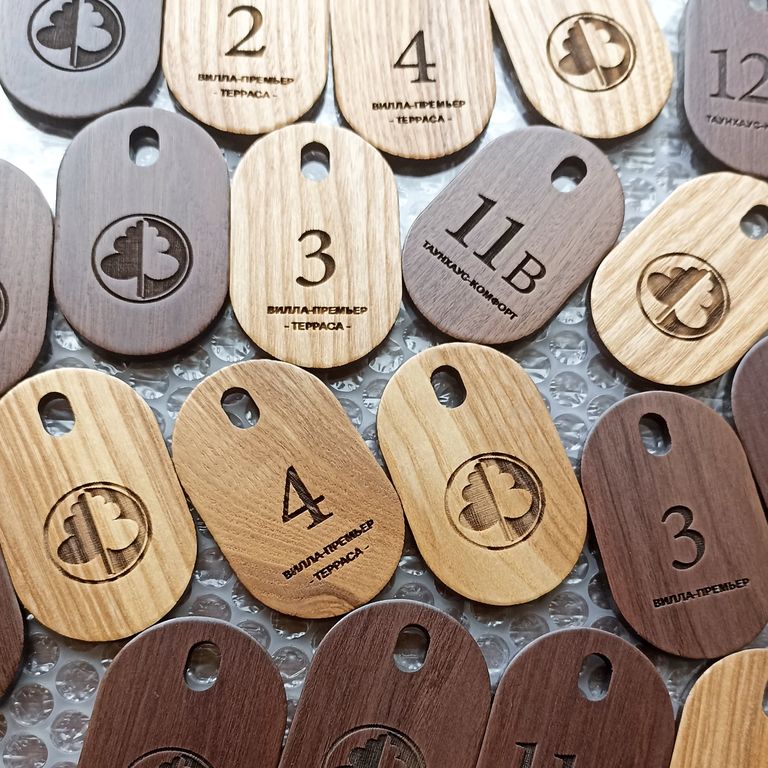 Изготавливаем номерки по индивидуальным заказам из натуральной древесины дуба, ясеня, красного дерева, ореха.