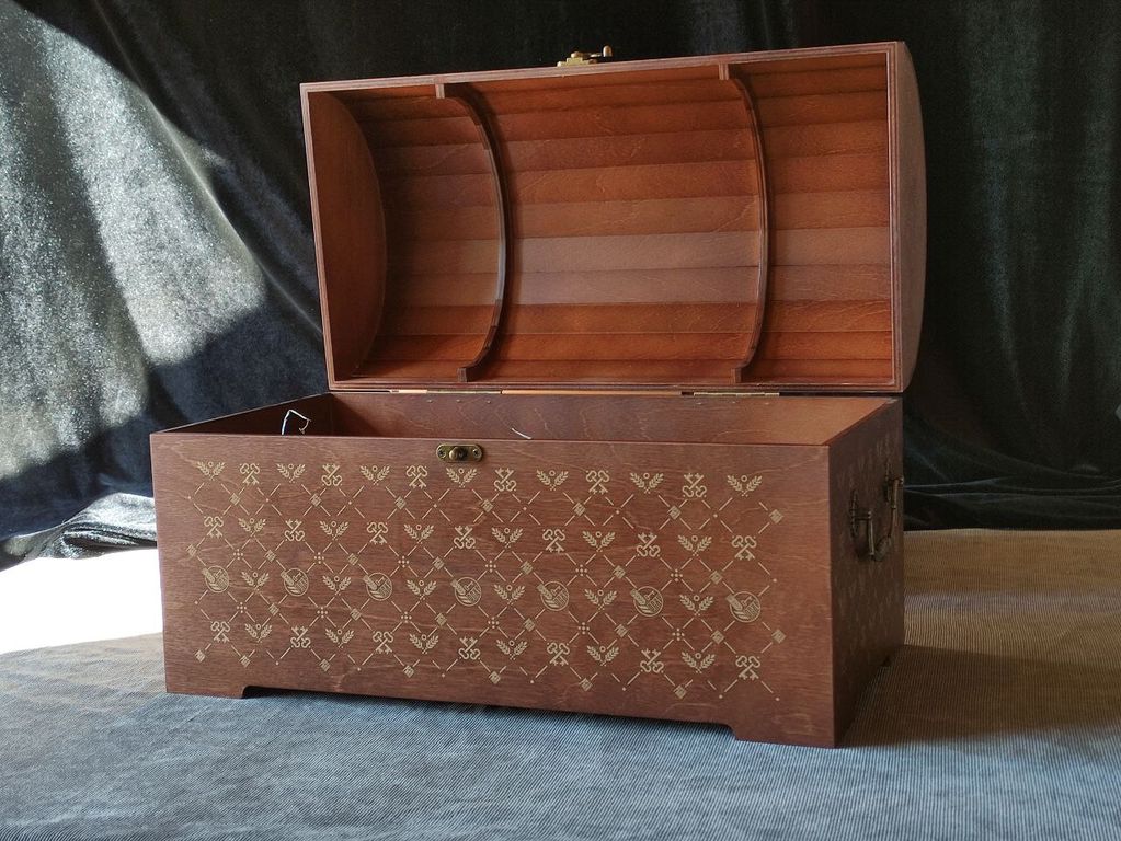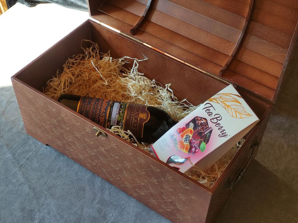 Большой фанерный сундук, качественно окрашенный и брендированный шелкографией - стильный и вместительный вариант для корпоративных подарков.