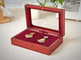 Футляры для медалей, монет, значков, наград, со стеклянной крышкой.