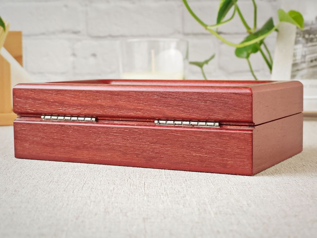 Шкатулки изготавливаются преимущественно со шпонами ореха, красного дерева или дуба.