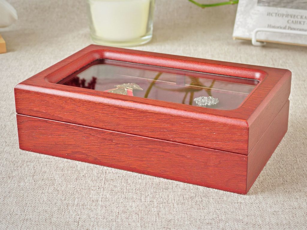 Деревянные шкатулки со стеклянной крышкой подходят для упаковки разных сувениров: ручек, сигар, ювелирных украшений, монет, медалей, фотографий и т.д.