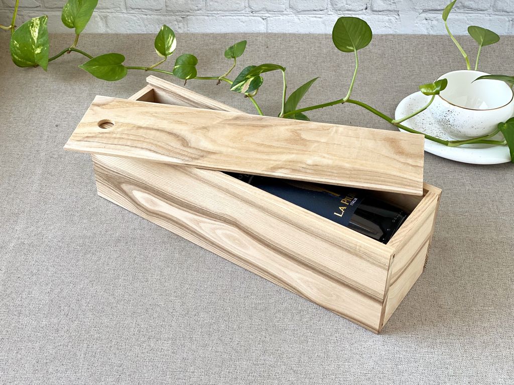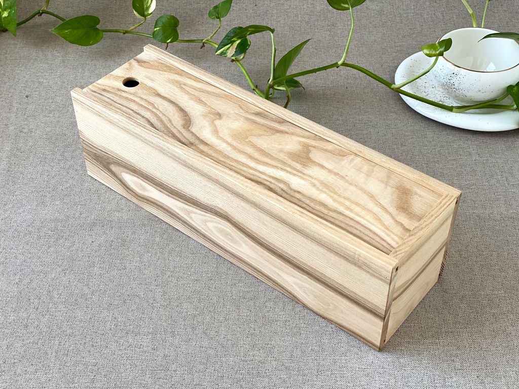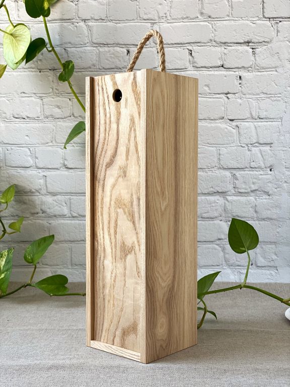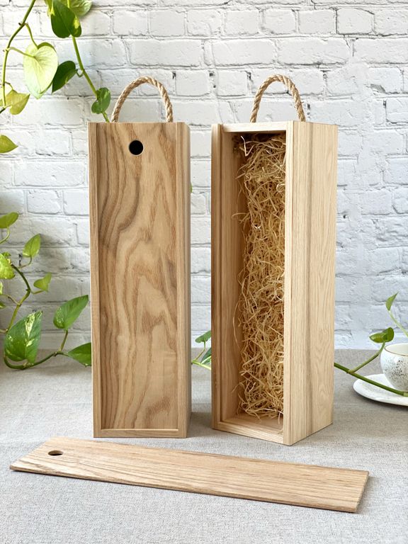 Пенал для вина / шампанского изготавливается из массива ясеня толщиной 8мм (борта) и 6мм(крышка).