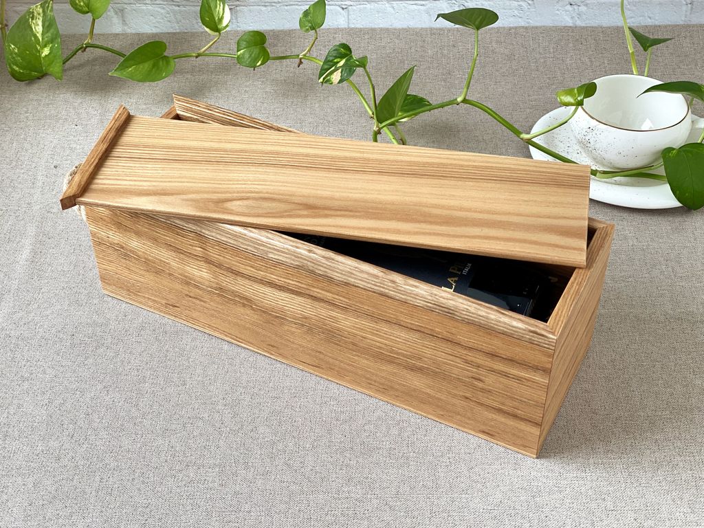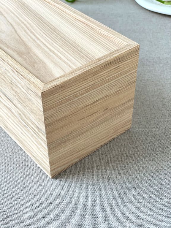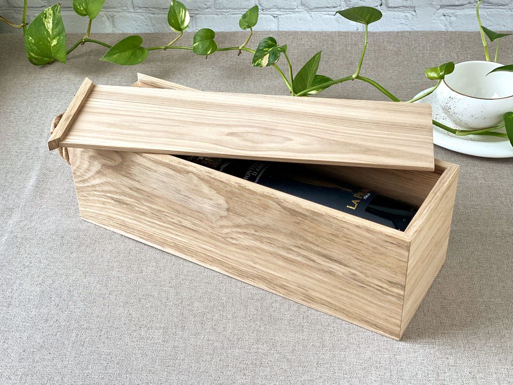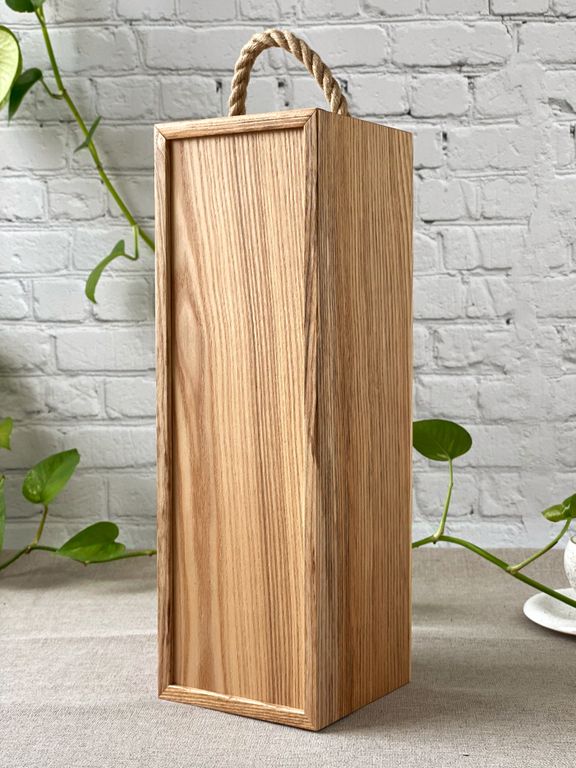 Пенал для вина /шампанского изготавливается из массива ясеня толщиной 8мм (борта) и 6мм(крышка).